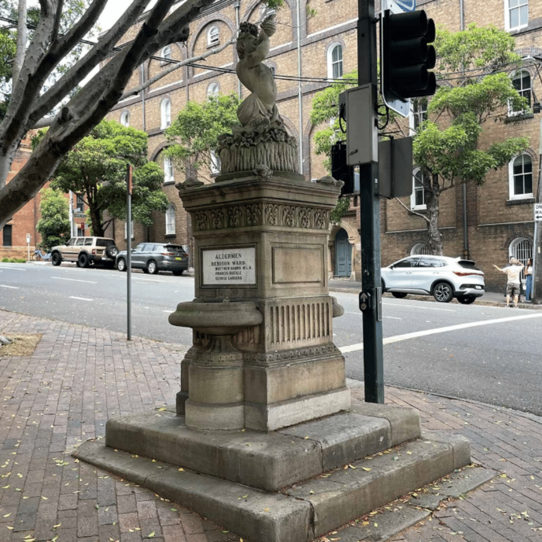 In 1896, the Hordern Fountain was installed in Sydney at the corner of Pyrmont Street, Edward Street and Pyrmont Bridge Road as a gift from prominent businessman Samuel Hordern. This ornate sandstone fountain once provided public drinking water at a time when access to clean water was limited and water infrastructure was still developing in the colony. Today, although no longer operational, it remains as a heritage landmark of Sydney’s early public amenity efforts.